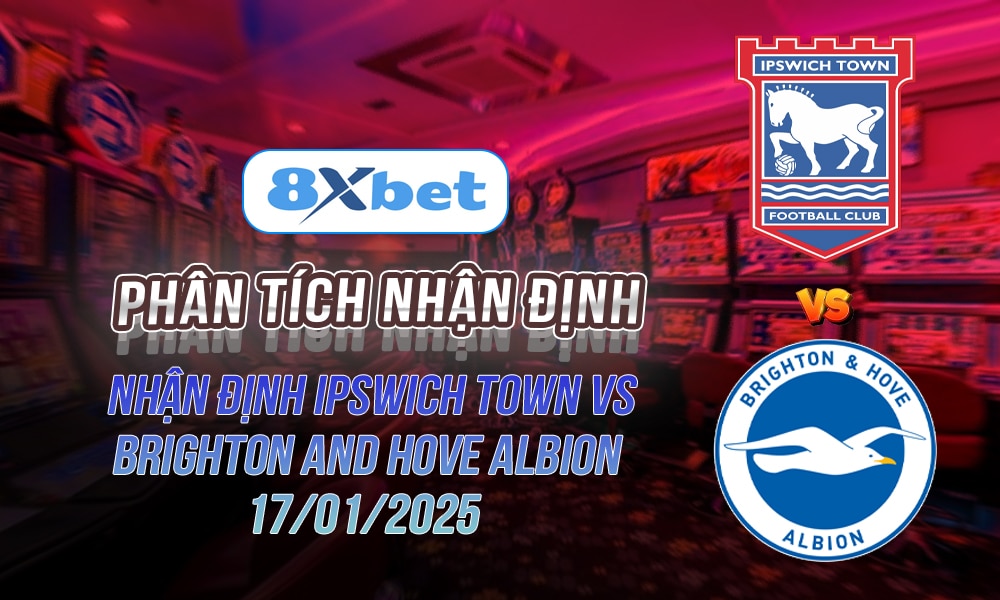 Trận đấu giữa Ipswich Town vs Brighton and Hove Albion trong khuôn khổ Ngoại hạng Anh, dự kiến diễn ra vào ngày 17/01/2025, hứa hẹn mang đến nhiều kịch tính và hấp dẫn cho người hâm mộ. Cùng với 8XBET dự đoán kết quả trận đấu sau khi phân tích các yếu tố về phong độ và lịch sử đối đầu của hai đội bóng nhé!